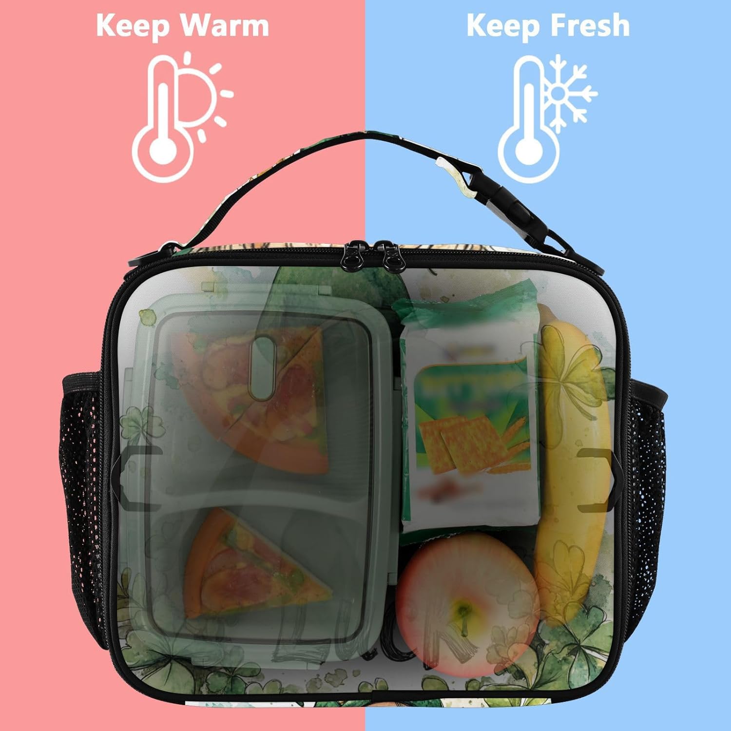 Multiple Carrying Options for Convenience:Designed with dual handles, side mesh pockets, and an adjustable shoulder strap, this Lunch Bag for Men can be carried by hand or as a crossbody, and its buckle handle makes it easy to attach to other bags.