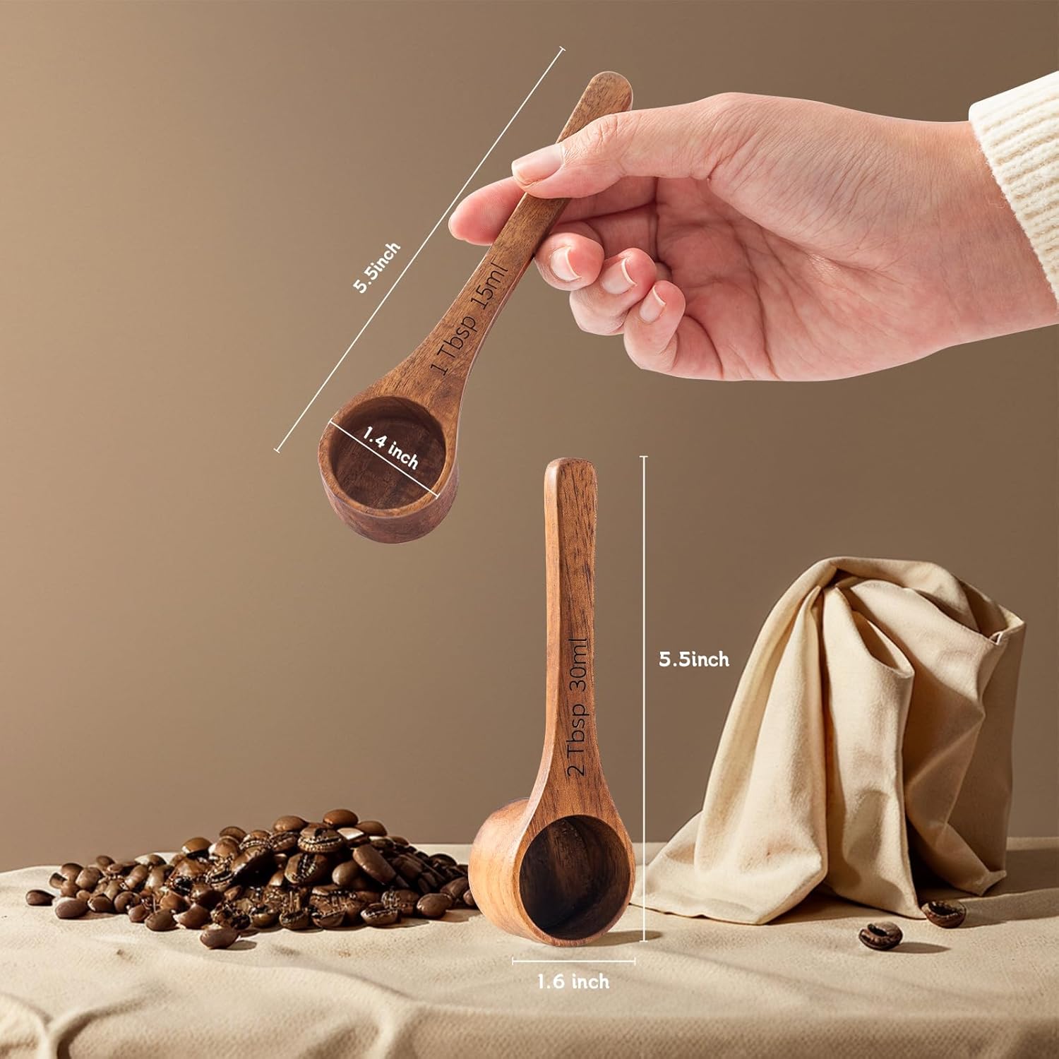 Wood Coffee Scoop-2PCS Wooden Measuring Scoops Wooden Scoops for Jars Small Wood Spoon for Canisters for Ground Coffee Seasoning Wooden Spoons For Bath Salts Scoop-Multipurpose (1 Tbsp+2 Tbsp)