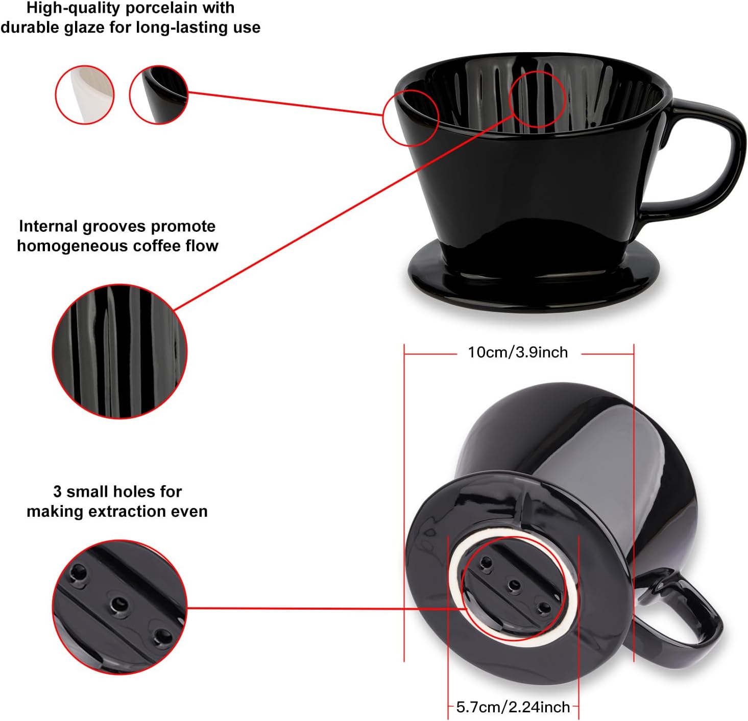 Easy to Use and Clean: Using the YOLIFE Ceramic Pour Over Coffee Dripper is as simple as adding your preferred ground coffee, pouring hot water over it, and letting it slowly drip through the 3 holes. The result is a rich and aromatic cup of coffee. Cleaning is hassle-free as well, thanks to the smooth porcelain material. Just rinse it with water and it’s ready for the next brewing session.