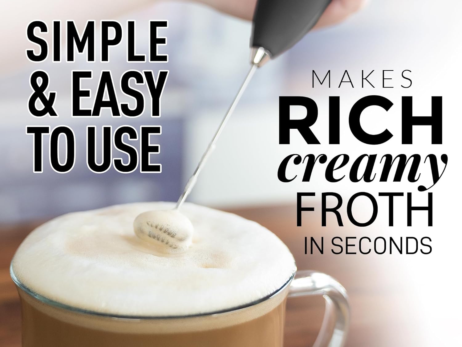 The Zulay Kitchen Powerful Milk Frother Wand has been a fantastic addition to my kitchen. This handheld drink mixer is impressively powerful, turning milk into a fluffy, creamy froth in seconds. Whether I’m making lattes, cappuccinos, or even just frothy hot chocolate, this frother delivers consistently excellent results every time. The speed and efficiency are truly remarkable, making it incredibly convenient for busy mornings when I need my coffee fix in a hurry.One of the things I love most about this frother is its ease of use. It’s lightweight and fits comfortably in my hand, making it simple to operate with just one touch. The stainless steel whisk is durable and easy to clean, and the overall design is sleek and modern. The compact size is also a big plus, as it doesnât take up much space in my kitchen drawer.Another standout feature is the versatility. While I primarily use it for frothing milk, I’ve also used it to mix protein shakes, whip up dressings, and blend other small-batch recipes. The motor is powerful enough to handle thicker liquids without any issues, and the frother operates quietly, which is a nice touch.The battery life is impressive as well, providing plenty of power for multiple uses before needing a recharge. This milk frother has elevated my coffee game to a new level, allowing me to enjoy café-quality drinks at home. The Zulay Kitchen Milk Frother Wand is a must-have for any coffee lover or anyone looking to add a little extra flair to their beverages.